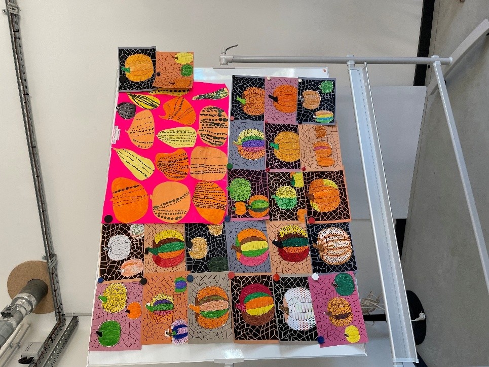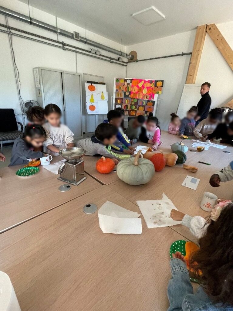 Pendant la deuxième séance, nous avons travaillé autour de la courge : observation, découverte des différentes variétés et activités sur ce légume d’automne.